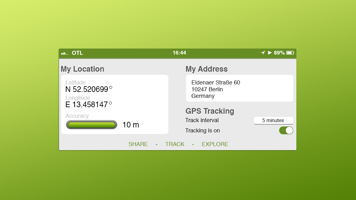 One Touch Location is an application that you can download in the IOS and Andriod store. Set your track and let other people enjoy the distance that you have travelled. You can go off and online in a button tab so that you decide what your friends see and what not.